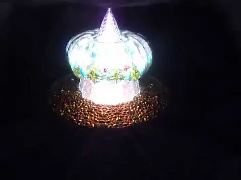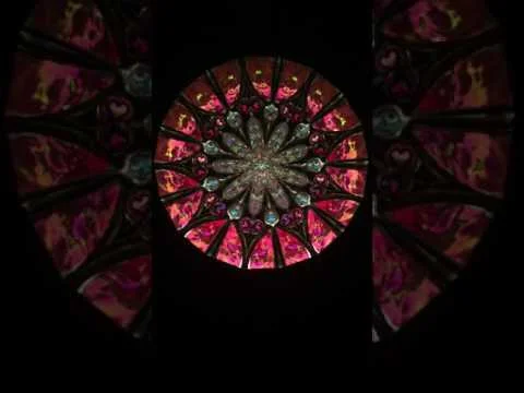 Image, resembling stained glass Rose Window, formed by glass cone containing around 40 separate elements
